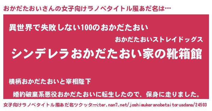 | 意味不明あだ名 | 『永久保存おかだたおい』 |