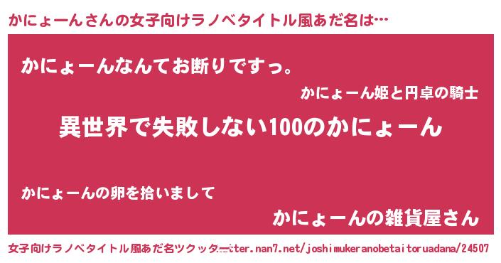 | 意味不明あだ名 | 『永久保存かにょーん』『自称かにょーん』 |
