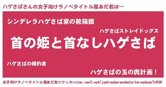 | 男性向けラノベタイトル風あだ名 | 『はたらくハゲさばさま!』 |