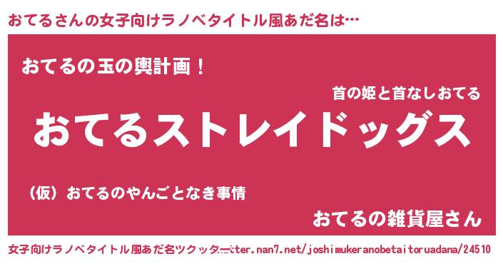 | 男性向けラノベタイトル風あだ名 | 『Re:おてるから始める異世界生活』 |