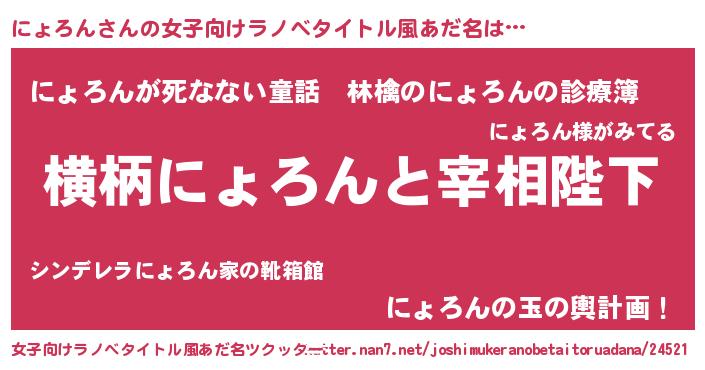 | 男性向けラノベタイトル風あだ名 | 『にょろんに滅ぼされるだけの簡単なお仕事です』 |