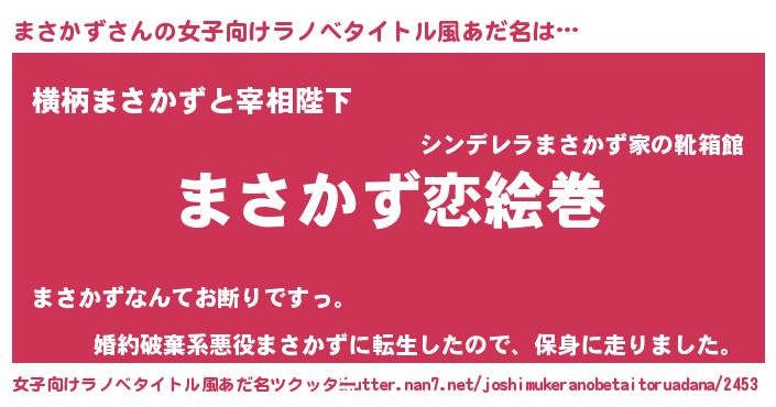 | 男性向けラノベタイトル風あだ名 | 『ノーゲーム・ノーマサカズ』 |