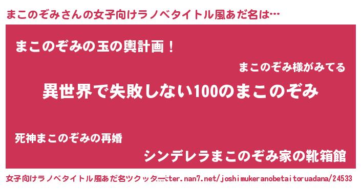 | 男性向けラノベタイトル風あだ名 | 『まこのぞみという概念が存在しない退屈な世界 』 |