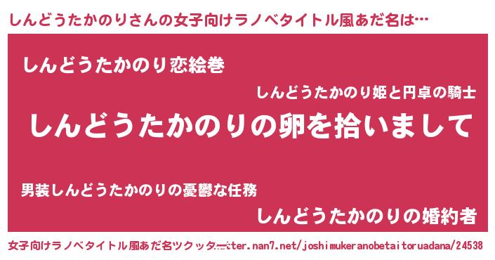 男性向けラノベタイトル風あだ名 | 『ダンジョンにしんどうたかのりを求めるのは間違っているだろうか』 |