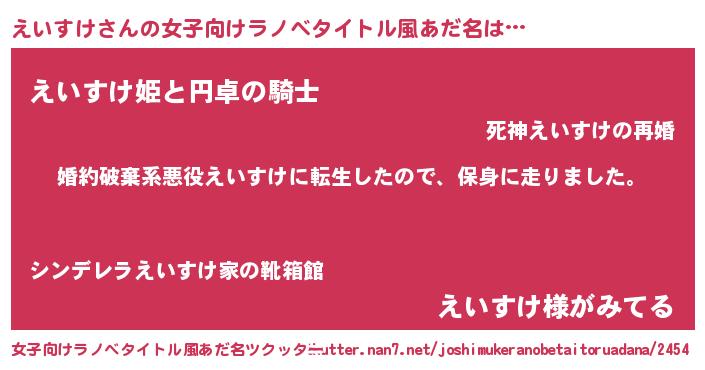 | 男性向けラノベタイトル風あだ名 | 『転生したらえいすけだった件』 |