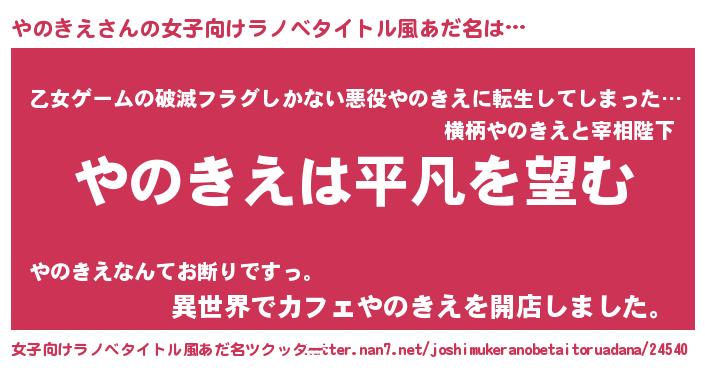 | 料理風あだ名 | 『やのきえの豆乳スープ』 |