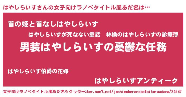 | 意味不明あだ名 | 『自称はやしらいす』 |