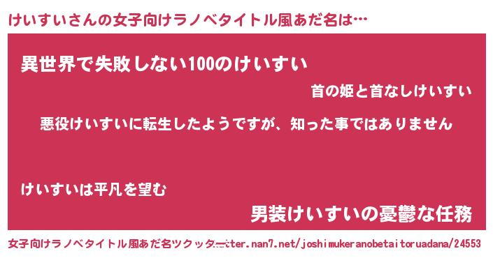 | ヘコむあだ名 | 『けいすい(苦笑)』『けいぷりん』 |