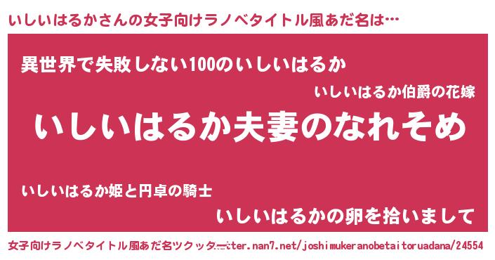 | 男性向けラノベタイトル風あだ名 | 『おまえをオタクにしてやるから、俺をいしいはるかにしてくれ! 』 |
