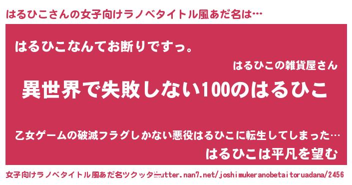 | 男性向けラノベタイトル風あだ名 | 『はるひこという概念が存在しない退屈な世界 』 |