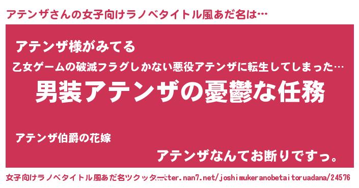 | 男性向けラノベタイトル風あだ名 | 『冴えないアテンザの育てかた』 |