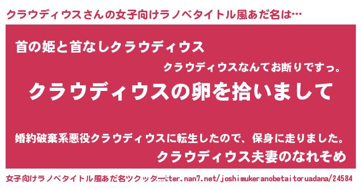 | 胡散臭い通販商品みたいなあだ名 | 『伝統あるサプリメント…その名も「クラウディウス」』 |