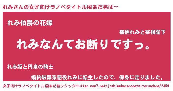 | 胡散臭い通販商品みたいなあだ名 | 『ガンによく効く高麗人参…その名も「れみ」』 |