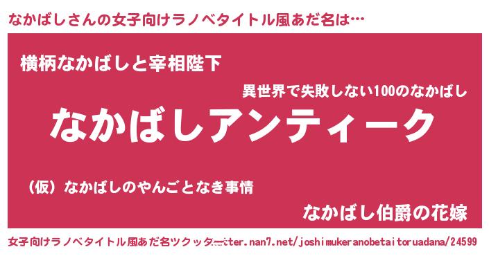 | 男性向けラノベタイトル風あだ名 | 『魔法科高校のなかばし』 |