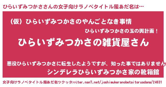 | 胡散臭い通販商品みたいなあだ名 | 『幸せが訪れる高級そうな壺…その名も「ひらいずみつかさ」』 |