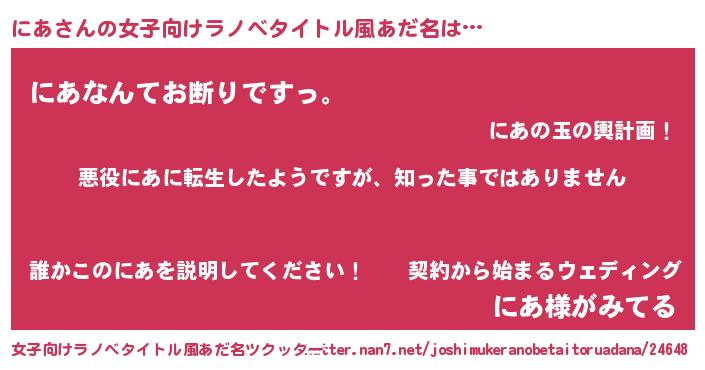 | 男性向けラノベタイトル風あだ名 | 『この素晴らしい世界ににあを!』 |