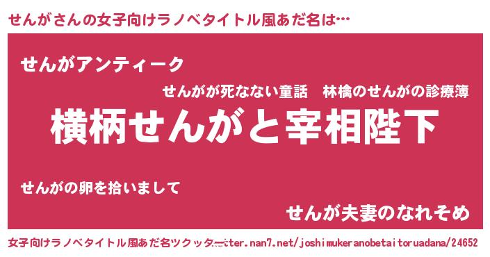 | 胡散臭い通販商品みたいなあだ名 | 『芸能人もオススメする高麗人参…その名も「せんが」』 |