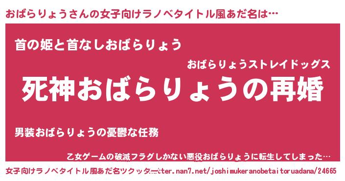 | 男性向けラノベタイトル風あだ名 | 『ノーゲーム・ノーオバラリョウ』 |