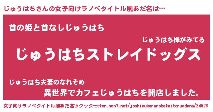 | 意味不明あだ名 | 『自称じゅうはち』『永久保存じゅうはち』 |