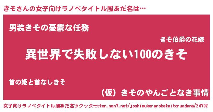 | 胡散臭い通販商品みたいなあだ名 | 『絶対に幸福をもたらす水素水…その名も「きそ」』 |