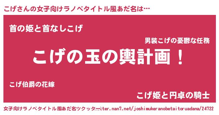 | 胡散臭い通販商品みたいなあだ名 | 『億万長者になれる水晶球…その名も「こげ」』 |