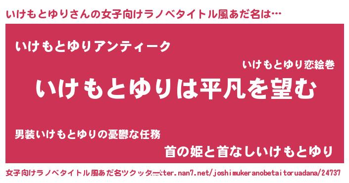 | 男性向けラノベタイトル風あだ名 | 『ダンジョンにいけもとゆりを求めるのは間違っているだろうか』 |