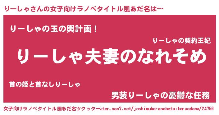 | ヒーロー風カッコイイあだ名 | 『正義の使者りーしゃ』『ネオリーシャ』 |