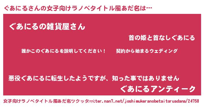 | 男性向けラノベタイトル風あだ名 | 『グアニルアートオンライン』 |