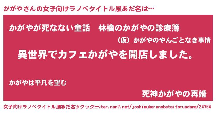 | ヘコむあだ名 | 『かがや(遠い目)』『かがにゅー』 |