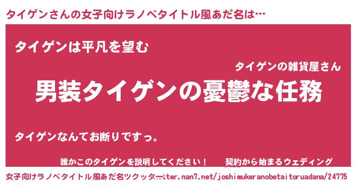 | 男性向けラノベタイトル風あだ名 | 『うちのタイゲンが世界を掌握している!』 |
