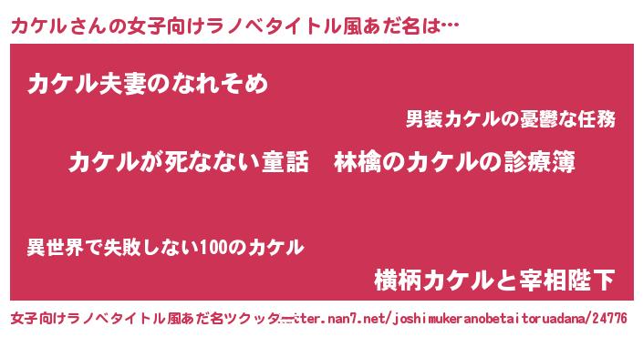 | 男性向けラノベタイトル風あだ名 | 『魔弾の王とカケル』 |