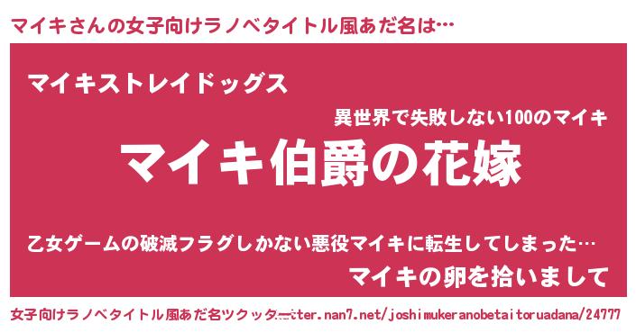 | ファンタジー風あだ名 | 『エターナルマイキー』『ゼマイトゥ』 |