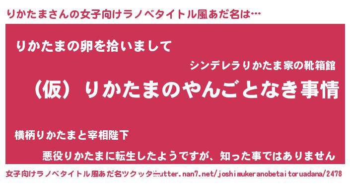 | 胡散臭い通販商品みたいなあだ名 | 『必ず成功するブレスレット…その名も「りかたま」』 |