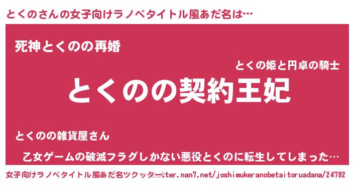 | 男性向けラノベタイトル風あだ名 | 『とくのという概念が存在しない退屈な世界 』 |