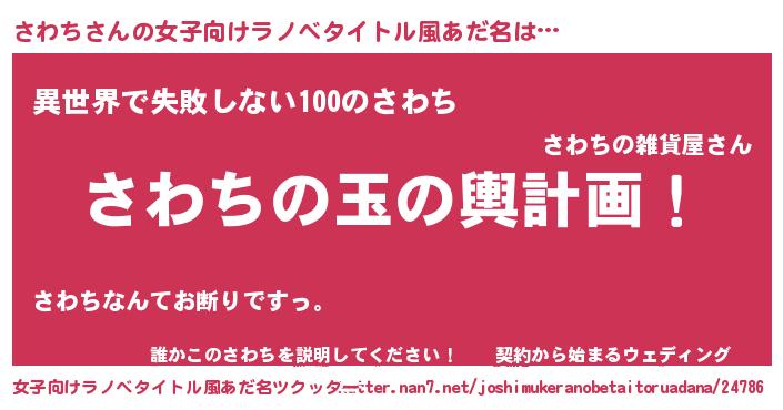 | 男性向けラノベタイトル風あだ名 | 『さわち~年齢イコール彼女いない歴の魔法使い~』 |