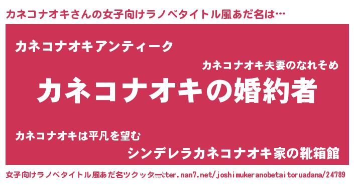| ファンタジー風あだ名 | 『エターナルカネコナオキー』 |