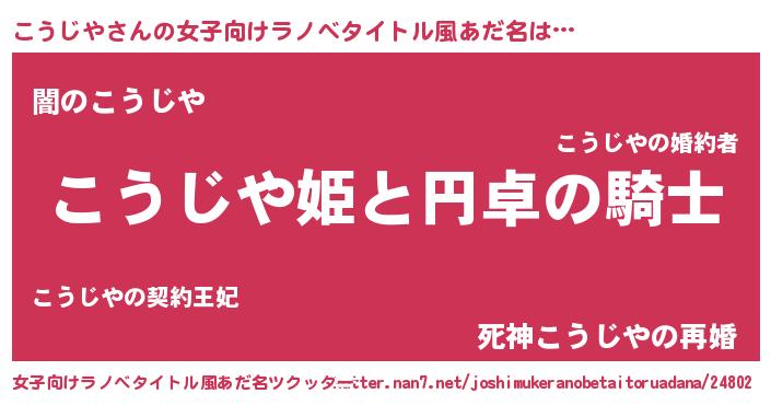 | 男性向けラノベタイトル風あだ名 | 『コウジヤアートオンライン』 |