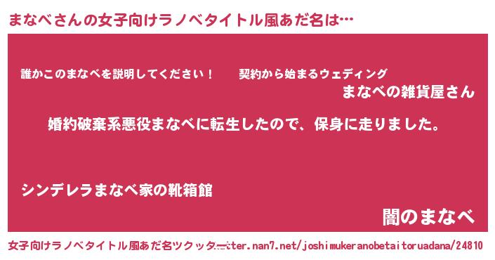 | ファンタジー風あだ名 | 『ユリマナヴァット』『マナフェル』 |
