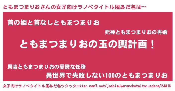 | 男性向けラノベタイトル風あだ名 | 『転生したらともまつまりおだった件』 |