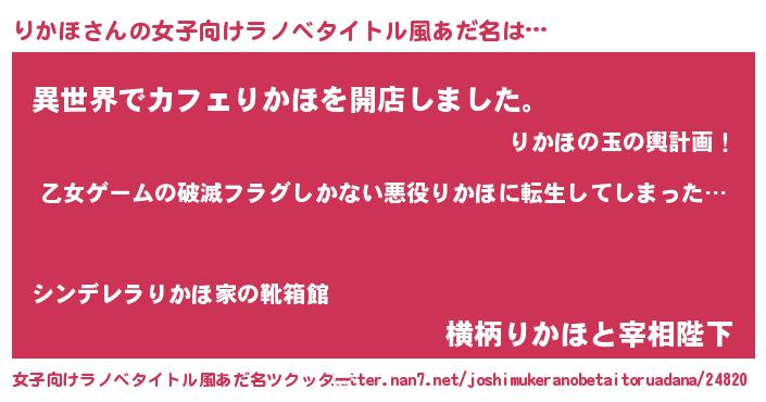 | ヘコむあだ名 | 『りかほ(小並感)』『りかにー』 |