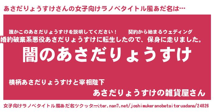 | 男性向けラノベタイトル風あだ名 | 『Re:あさだりょうすけから始める異世界生活』 |