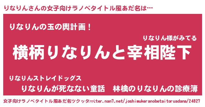 | 男性向けラノベタイトル風あだ名 | 『りなりんに滅ぼされるだけの簡単なお仕事です』 |
