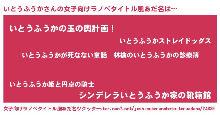 | 意味不明あだ名 | 『住所不定無職いとうふうか(39歳)』 |