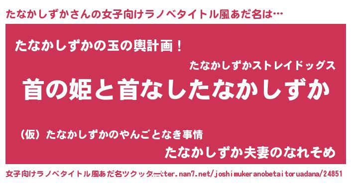 | 男性向けラノベタイトル風あだ名 | 『はたらくたなかしずかさま!』 |