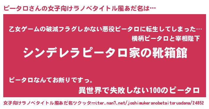 | 胡散臭い通販商品みたいなあだ名 | 『世界中を虜にした100年もののヴィンテージワイン…その名も「ピータロ」』 |