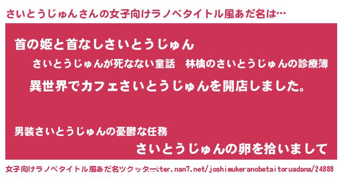 | 意味不明あだ名 | 『永久保存さいとうじゅん』 |