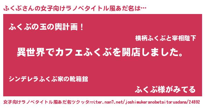 | 男性向けラノベタイトル風あだ名 | 『誰もが恐れるあのふくぶが、ぼくの専属メイドになるようです。』 |