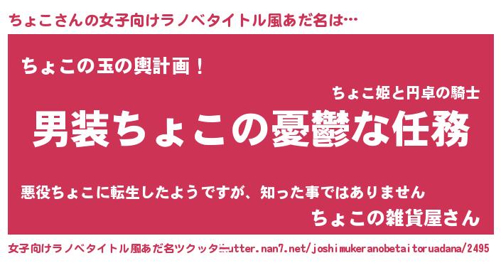 | 男性向けラノベタイトル風あだ名 | 『冴えないちょこの育てかた』 |