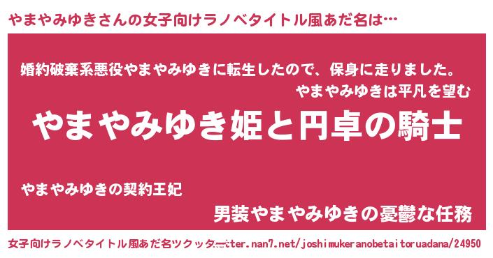 | 男性向けラノベタイトル風あだ名 | 『ヤマヤミユキアートオンライン』 |