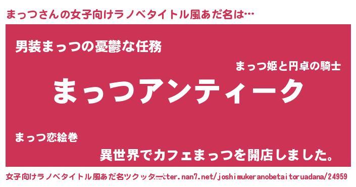 | 男性向けラノベタイトル風あだ名 | 『魔法科高校のまっつ』『まっつの憂鬱』 |